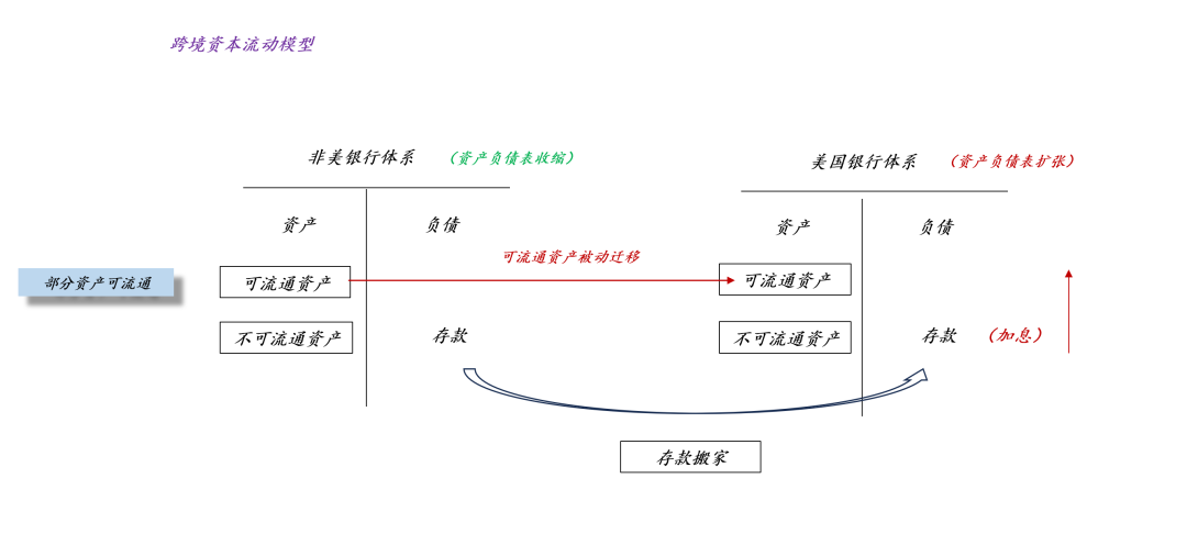 显而易见,如果美国体系的利率高于非美体系,存款有往美国体系搬家的趋势。