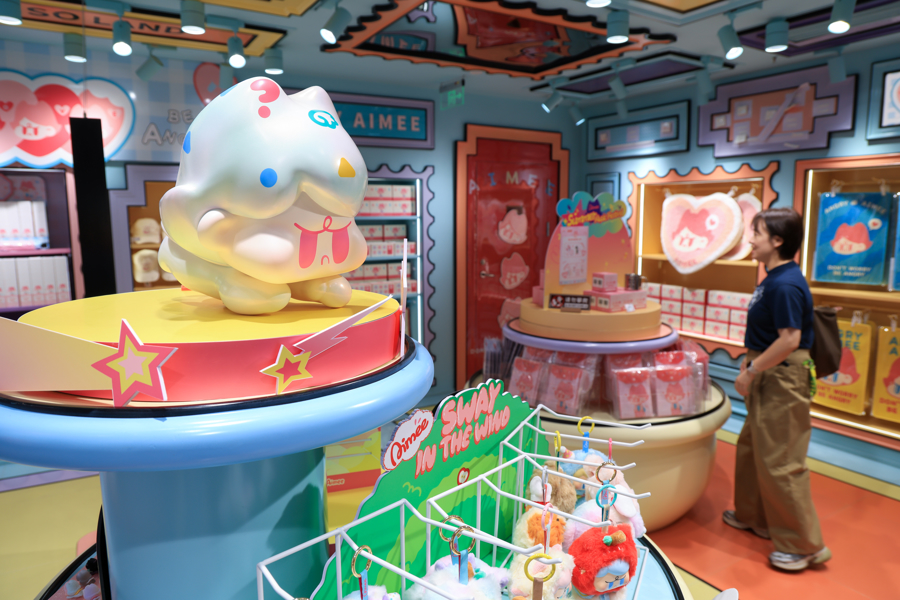 2025年10月28日,顾客在广州的名创优品MINISO LAND(城市乐园店)选购原创IP潮玩产品。 新华社发